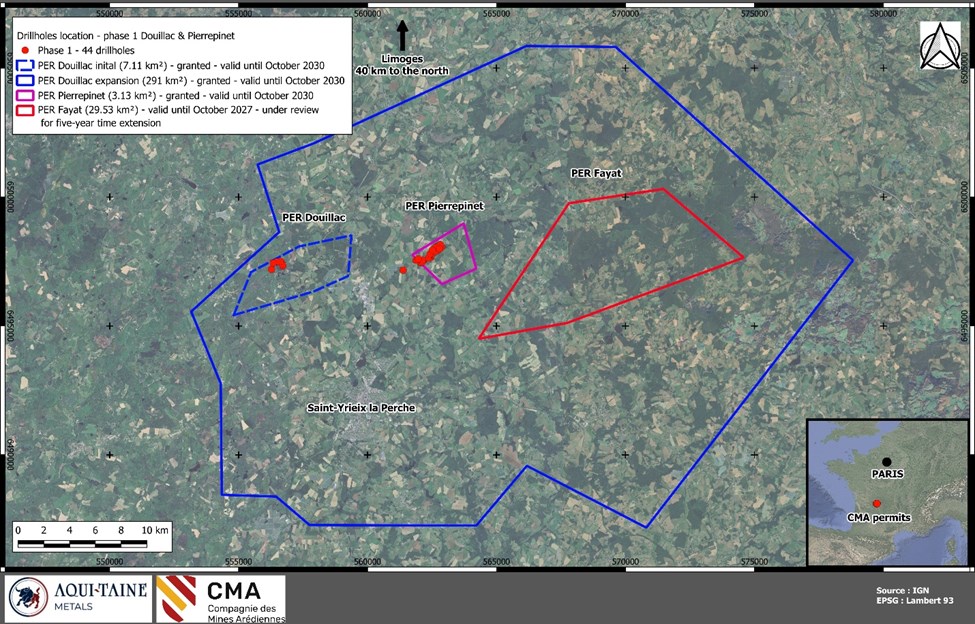 - L’extension sur une superficie d’environ 298 km2 du PER Douillac portant sur partie du territoire des communes de Jumilhac-le-Grand dans le département de la Dordogne et de Château-Chervix, Coussac-Bonneval, Glandon, Ladignac-le-Long, La Meyze, La Roche-l’Abeille, Le Chalard, Meuzac, Saint-Priest-Ligoure, Saint-Yrieix-la-Perche dans le département de la Haute-Vienne.